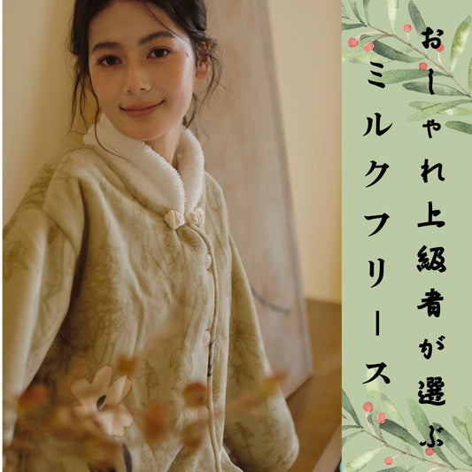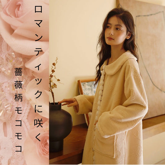 【秋冬物発売開始!!】2025 冬新作❄️日本製❤️モコモコルームウェア ベージュ バラ 羽織り ワンピーススタイル