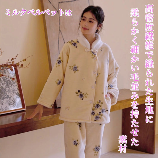 【秋冬物発売開始!!】 2025 冬新作❄️日本製❤️モコモコルームウェア バラ 上下セット