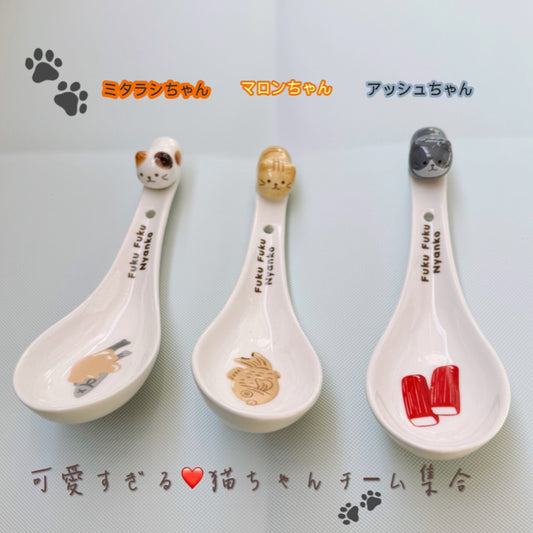 猫ちゃん好き必見!!陶器 レンゲ ラーメンレンゲ3本セット2025新作