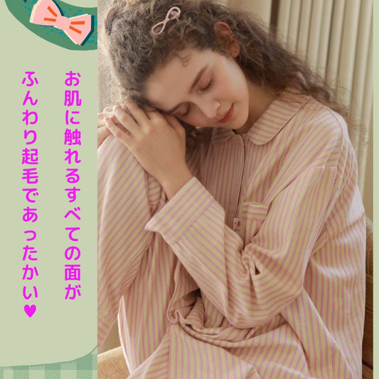 2025Winter 全面起毛 両面起毛だから片面よりさらに柔らかく、あたたかい! 綿100% ピンクorライトブルー ストライプ 2色展開 日本製