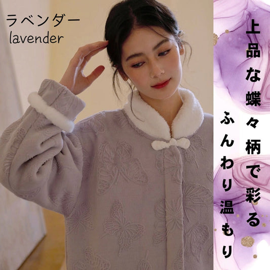 【秋冬物発売開始!!】 2025 冬新作❄️日本製❤️モコモコルームウェア 2色展開 パープル べージュ 蝶々 上下セット
