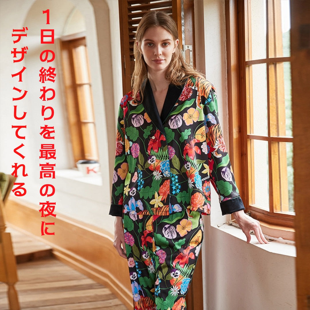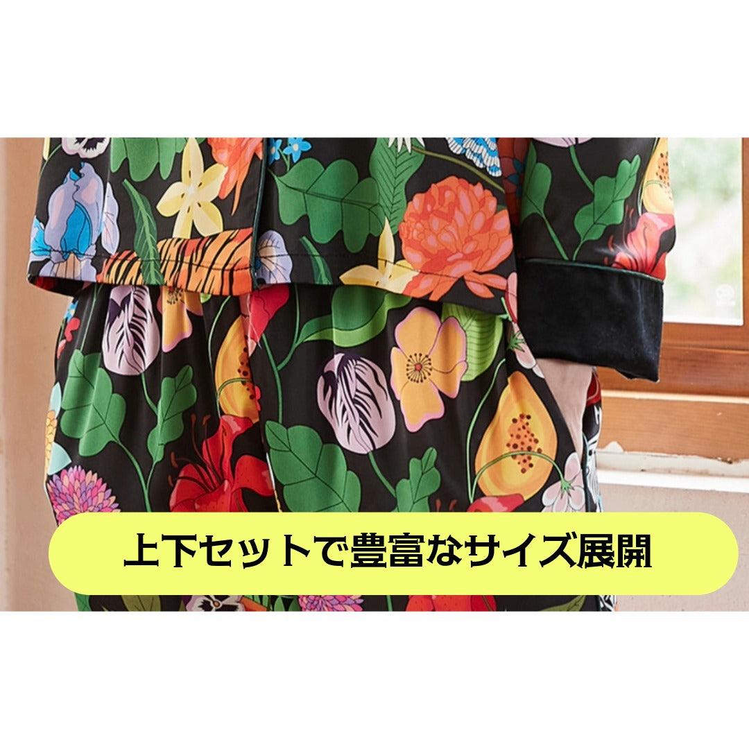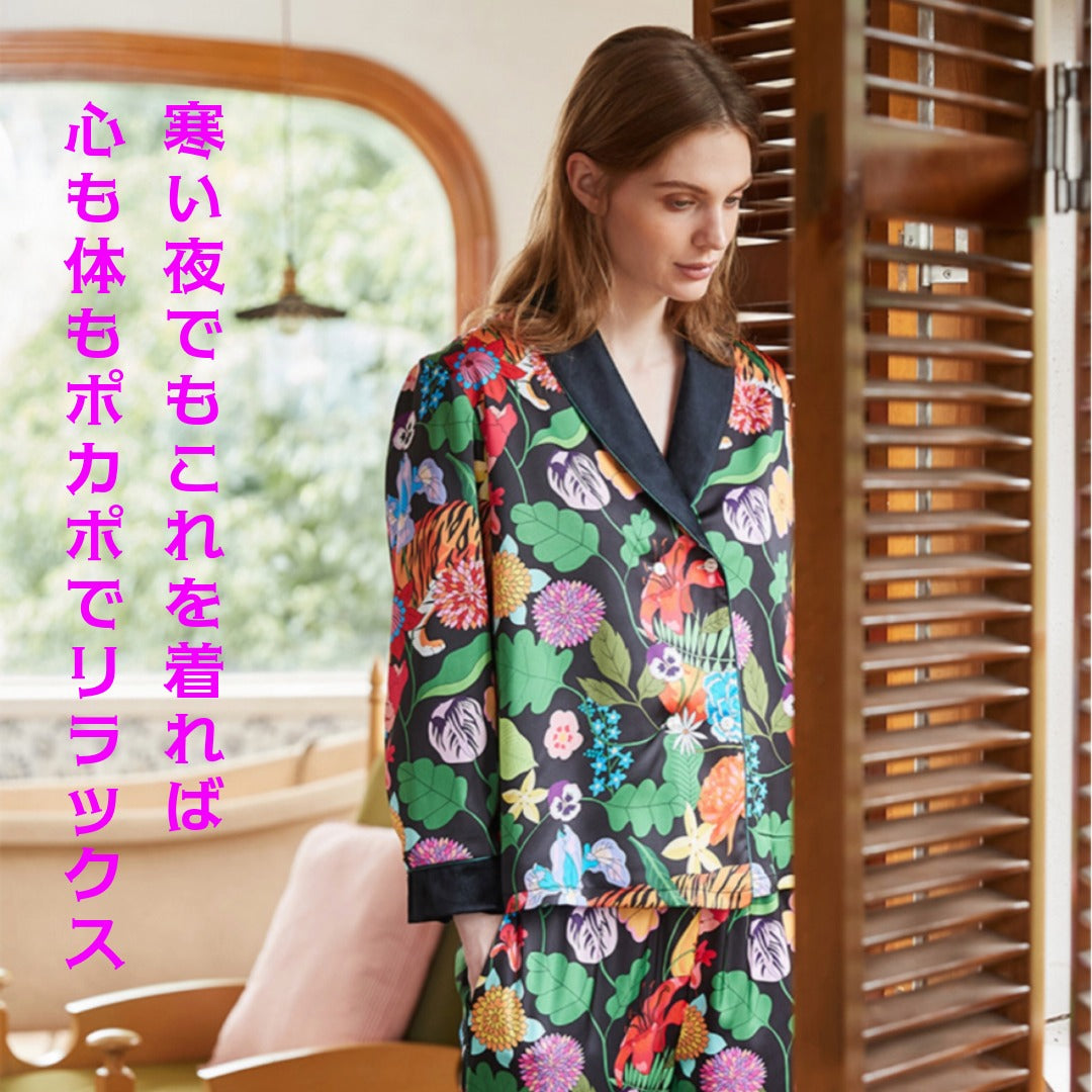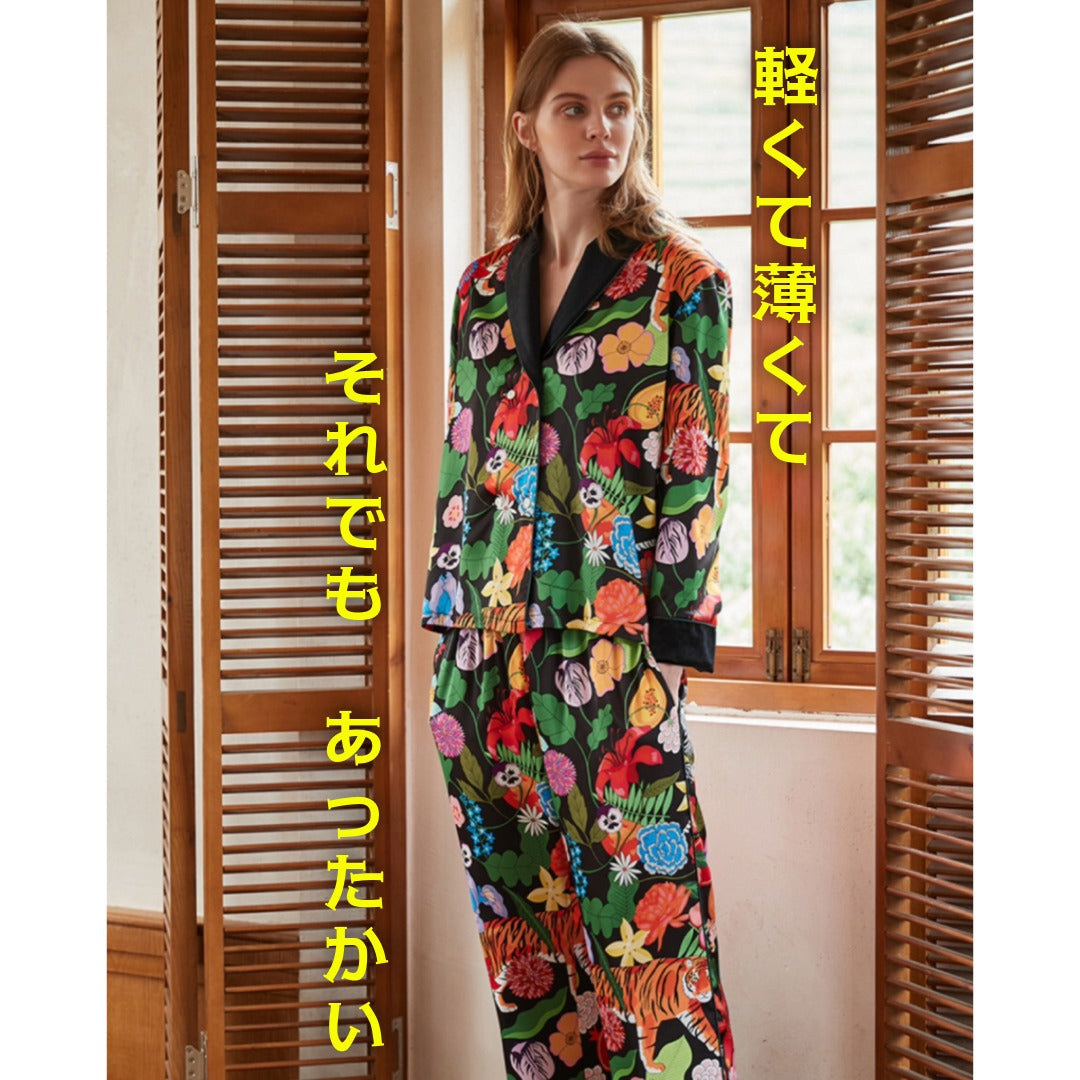 【先行発売開始】2025秋冬新作 🎃ホットシルク 裏地ベロア ハイビスカス柄 長袖 長ズボン パジャマ ルームウェア