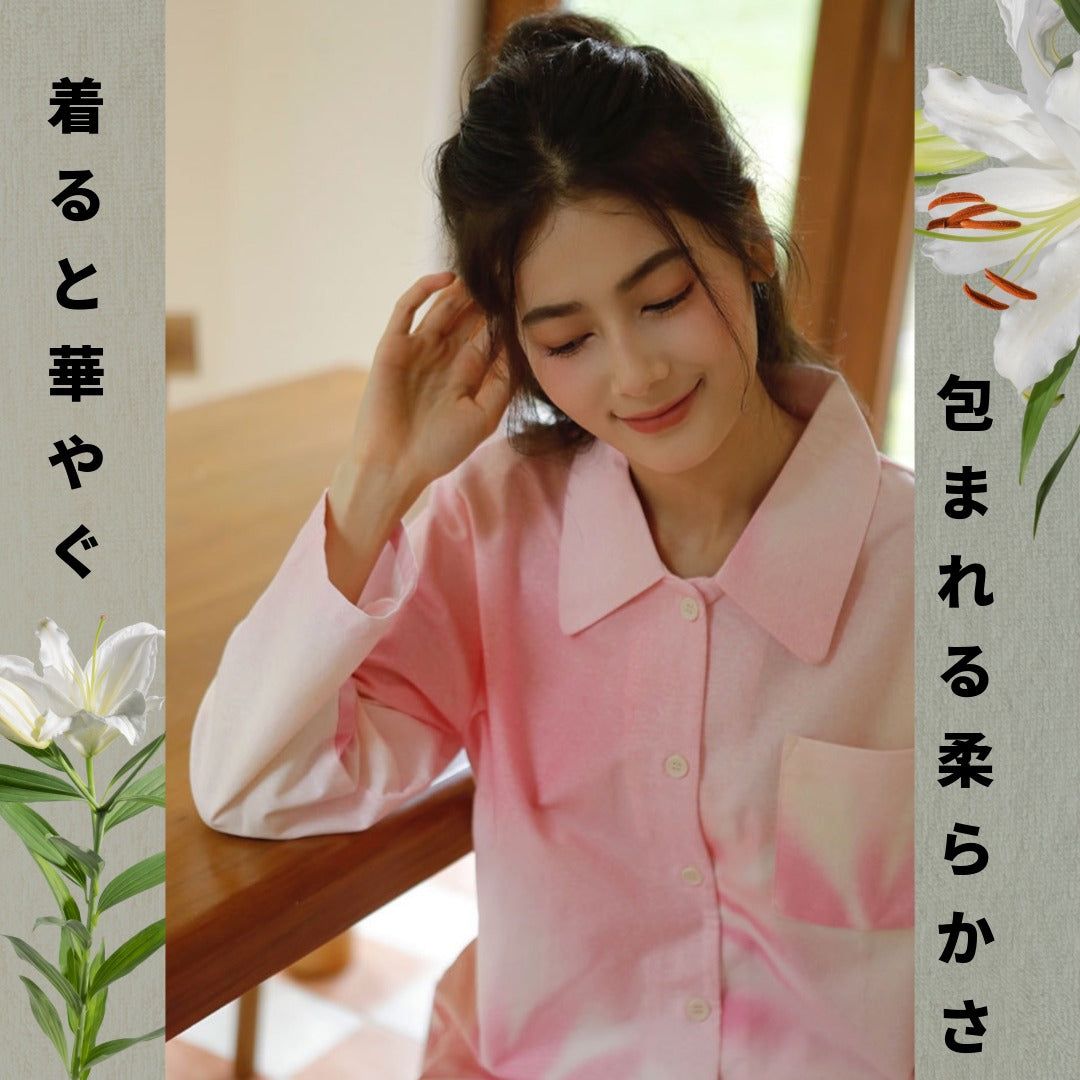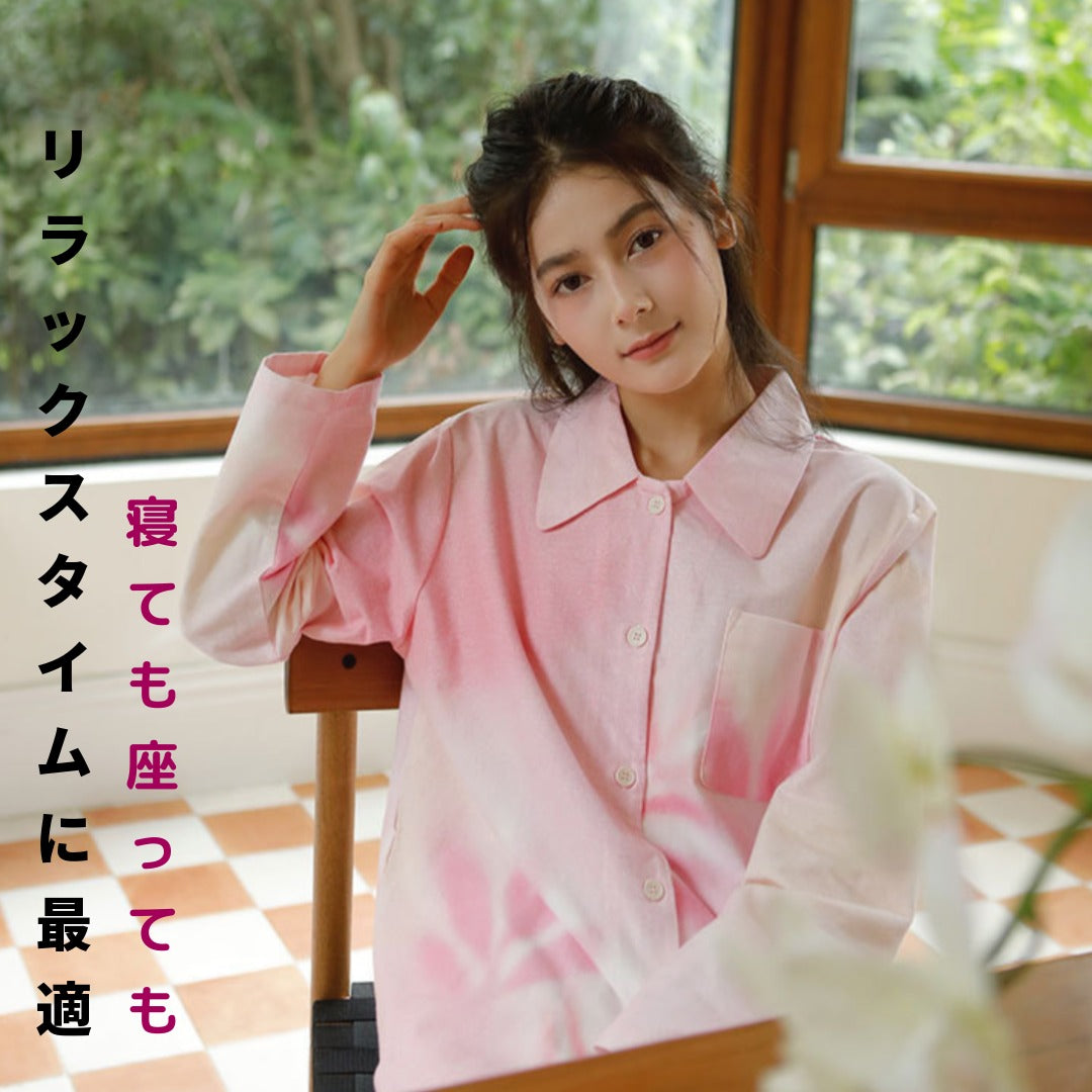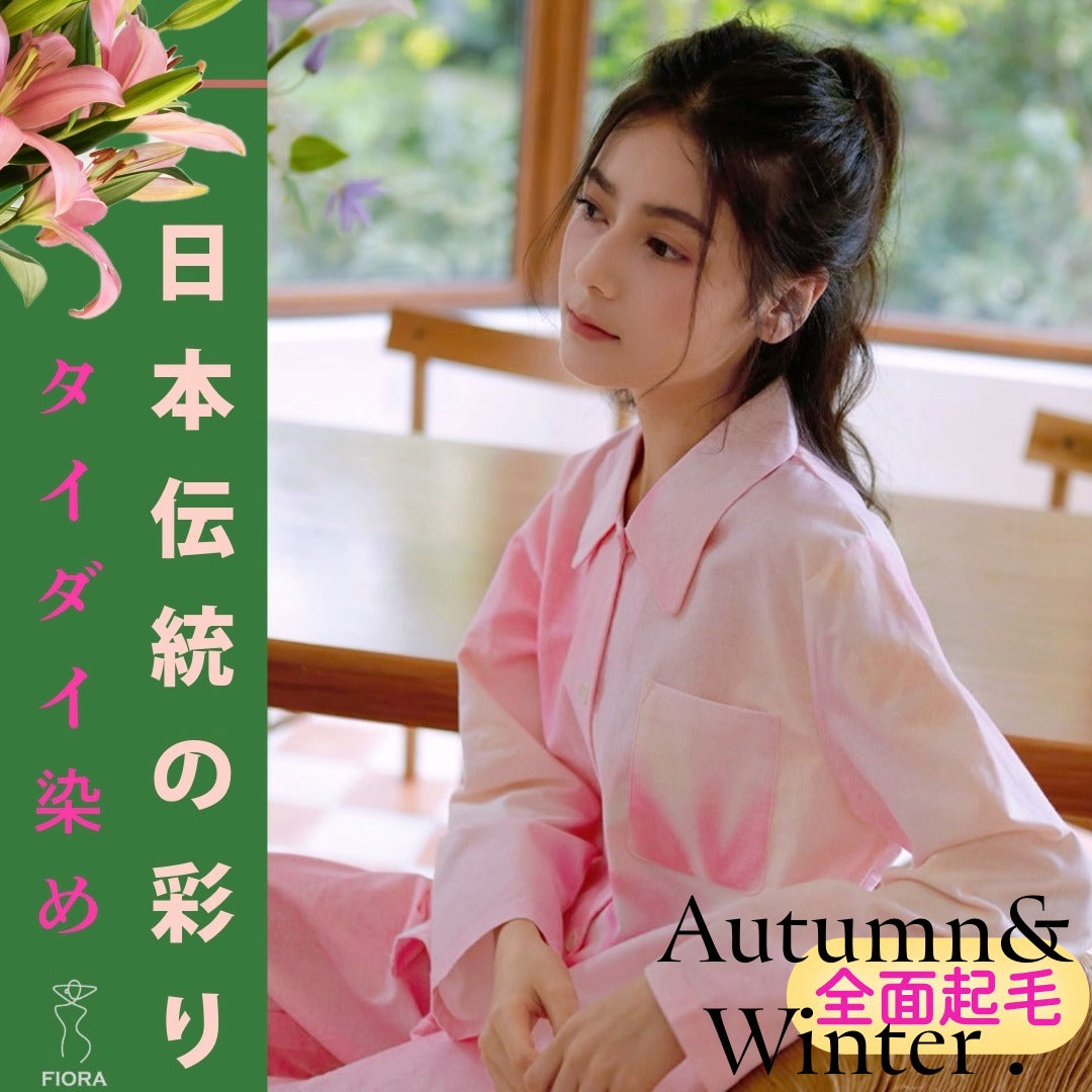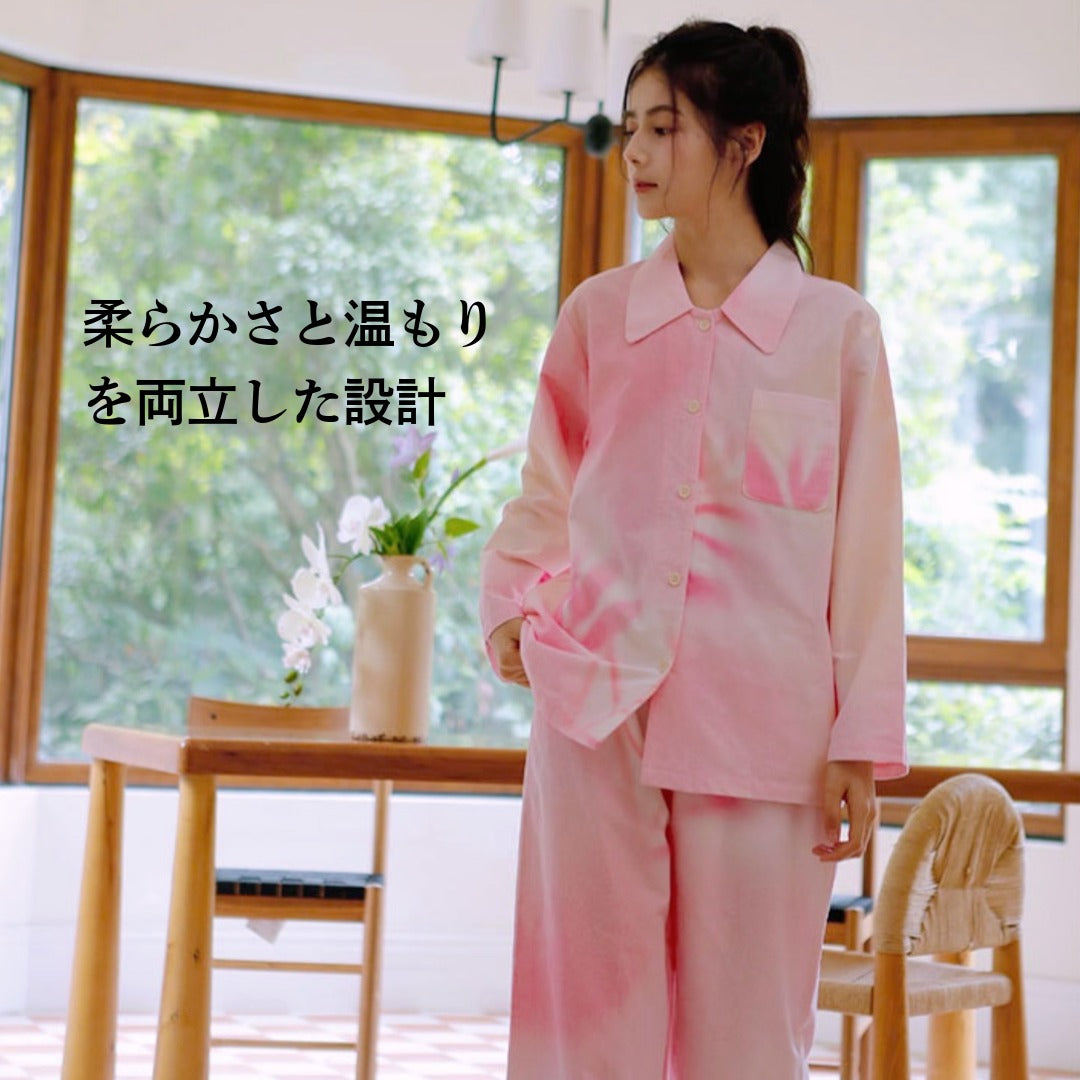 ◆色あざやかなタイダイ染めのピンクがおウチ時間をカラフルにワクワクさせてくれるデザイン。可愛さと機能性を両立した冬の定番パジャマ。