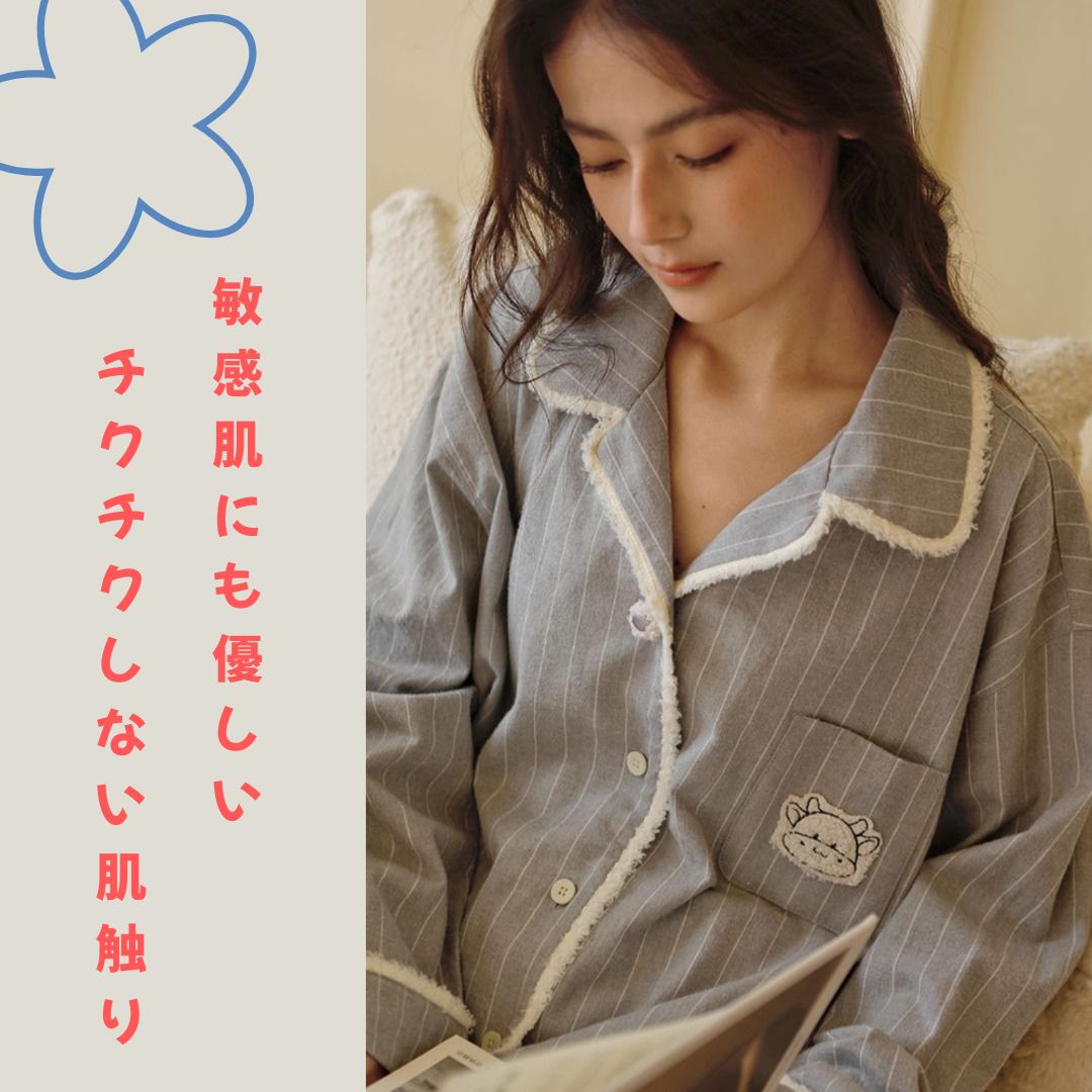 ◆敏感肌にも嬉しい、チクチクしない柔らかさ。洗うたびにふんわり感が増し、育てるパジャマです。