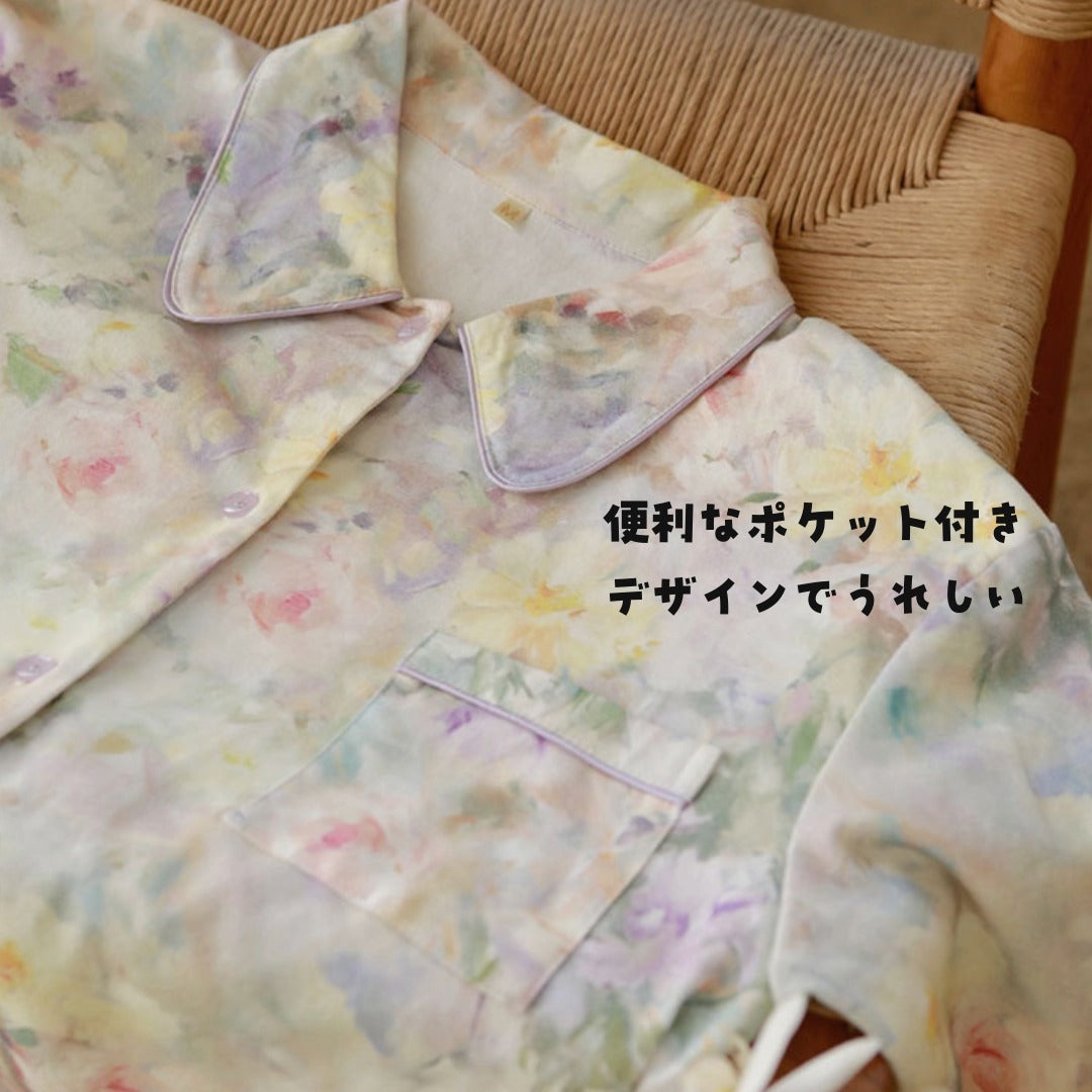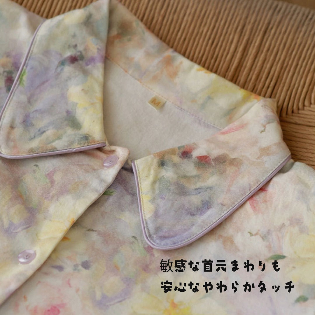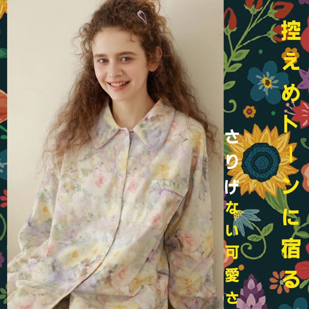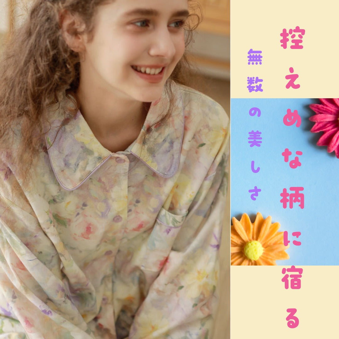 ◆キャンパスに描かれたようなパステルフラワーデザインが上品で可愛いらしいルームウェアが発売開始されました。ゆったりとした大きめなサイズ感のため幅広い年齢層の方にお選びいただけます。