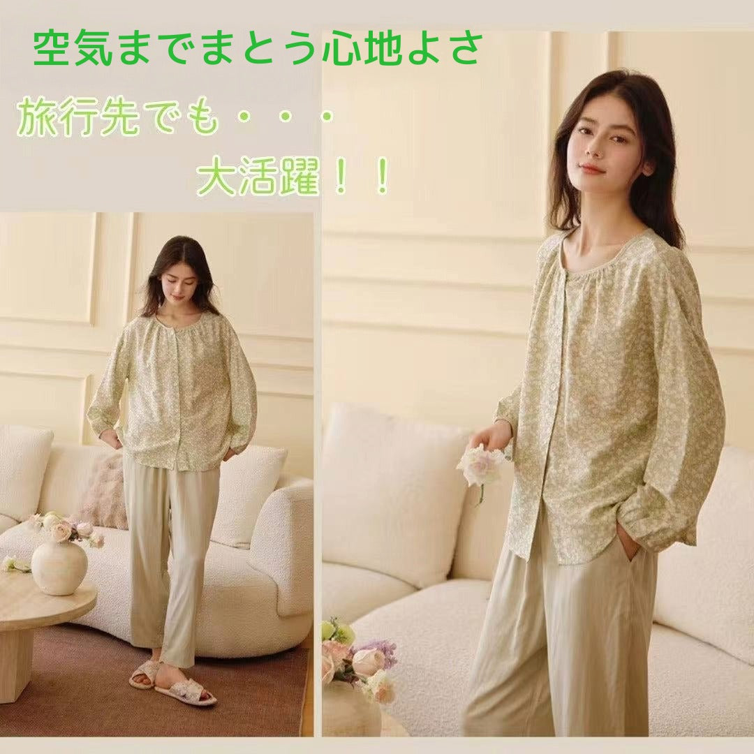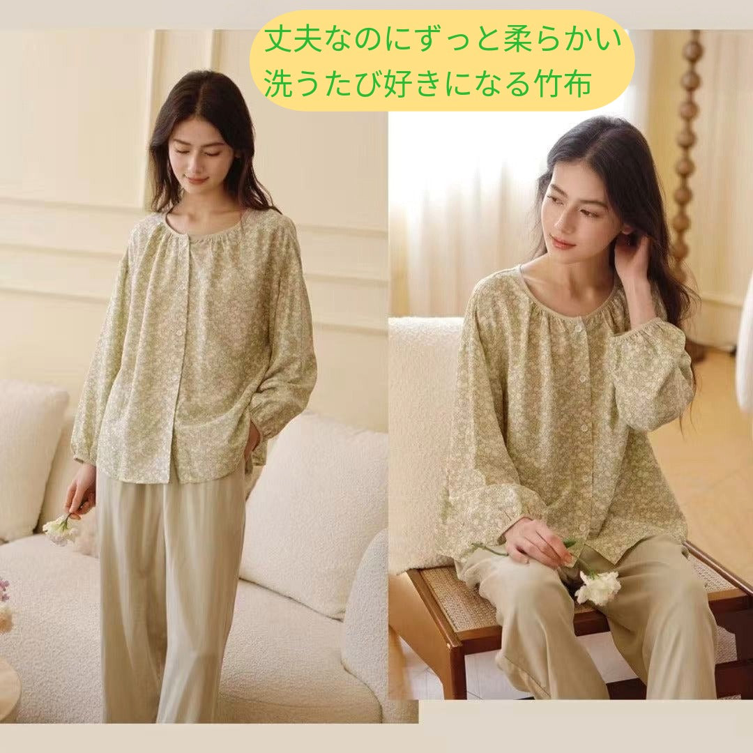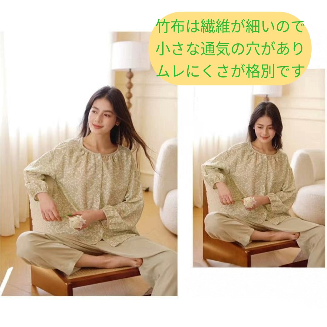 竹布🎋TAKEFU 【日本製】 若草色 襟なし 長袖 長ズボン パジャマ ルームウェア