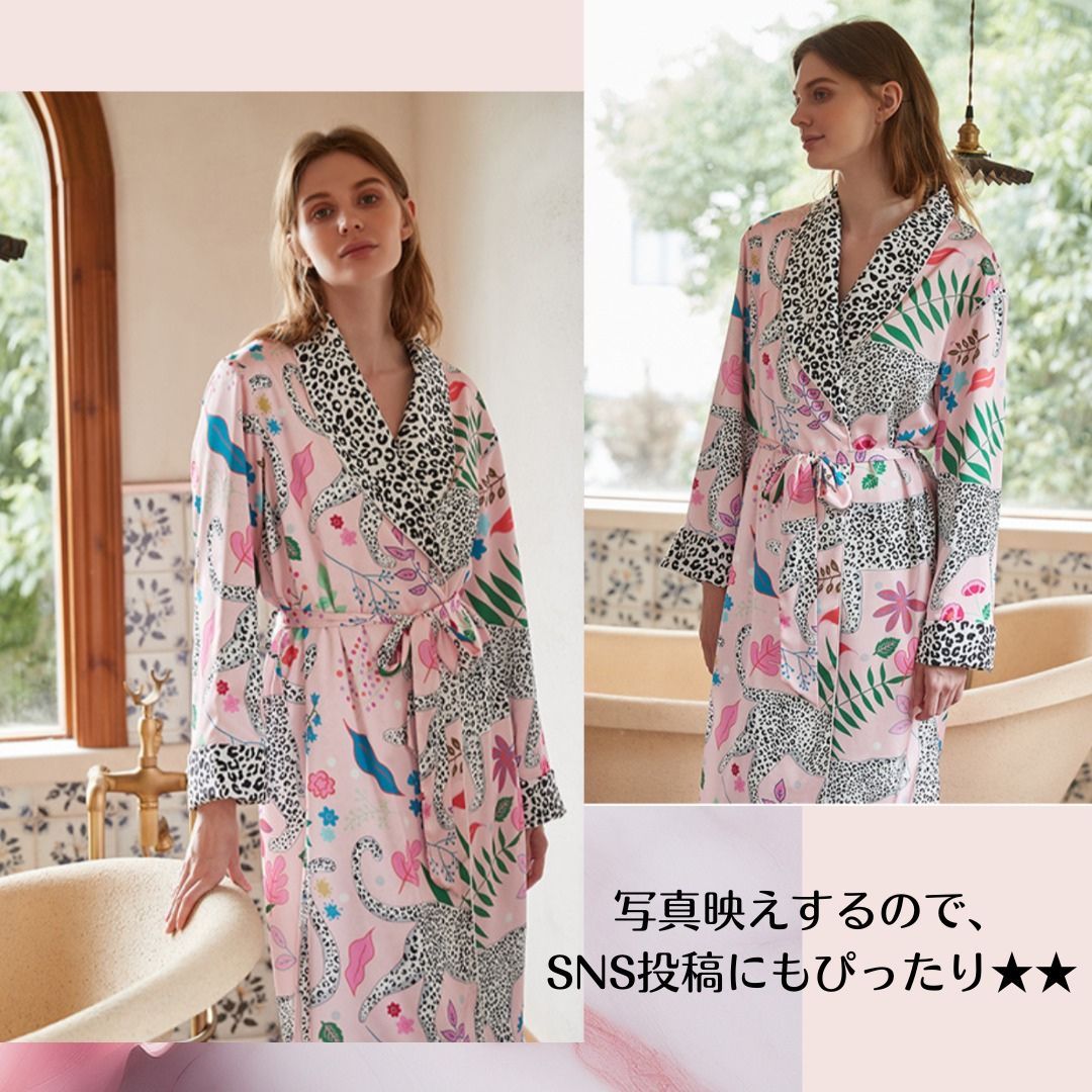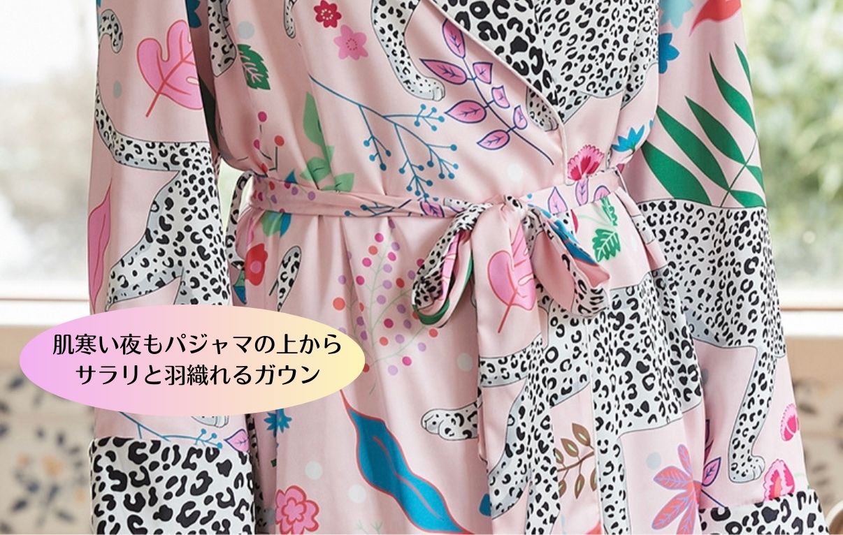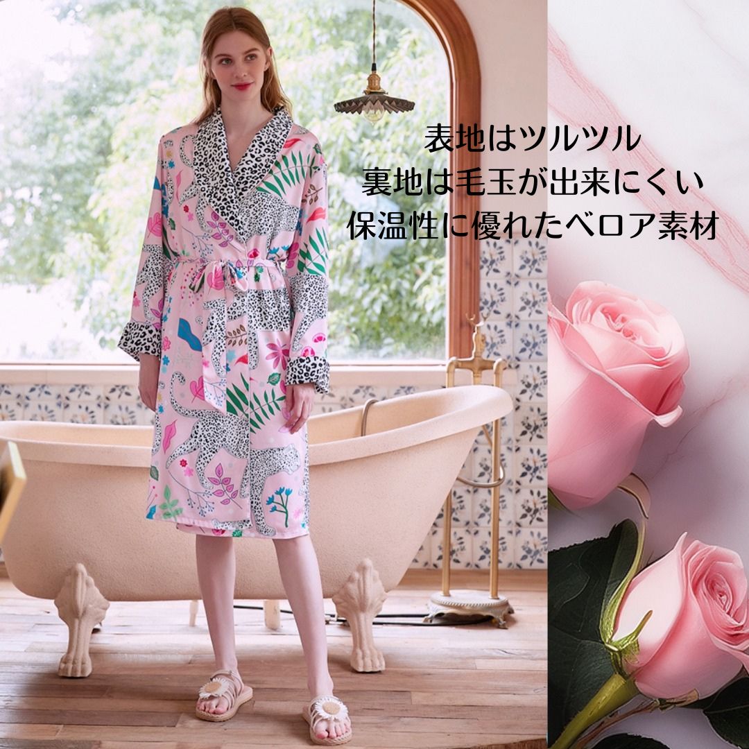 【先行発売開始】2025秋冬新作 🎃ホットシルク ガウン バスローブ 裏地ベロア 白ヒョウ パジャマ ルームウェア