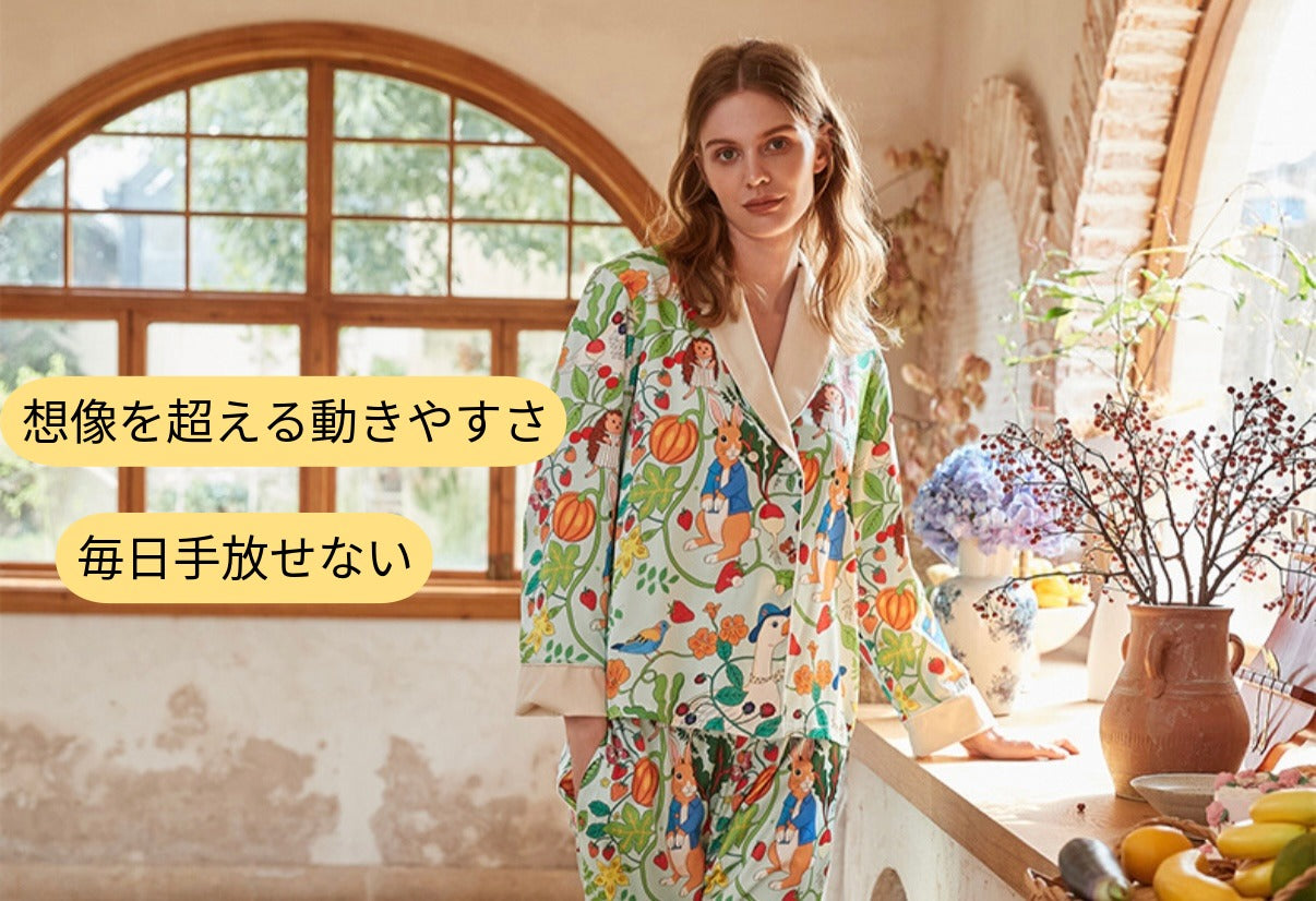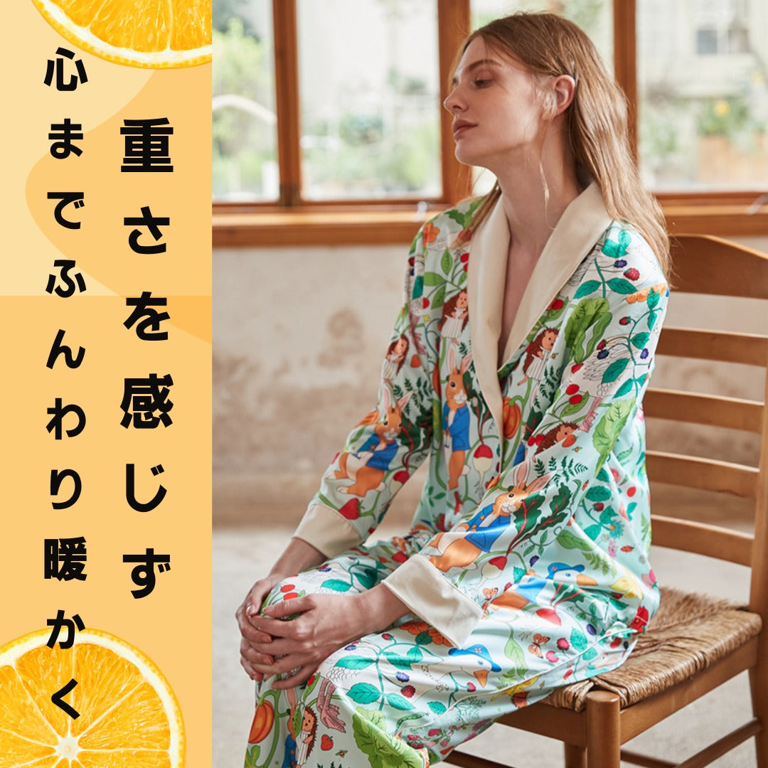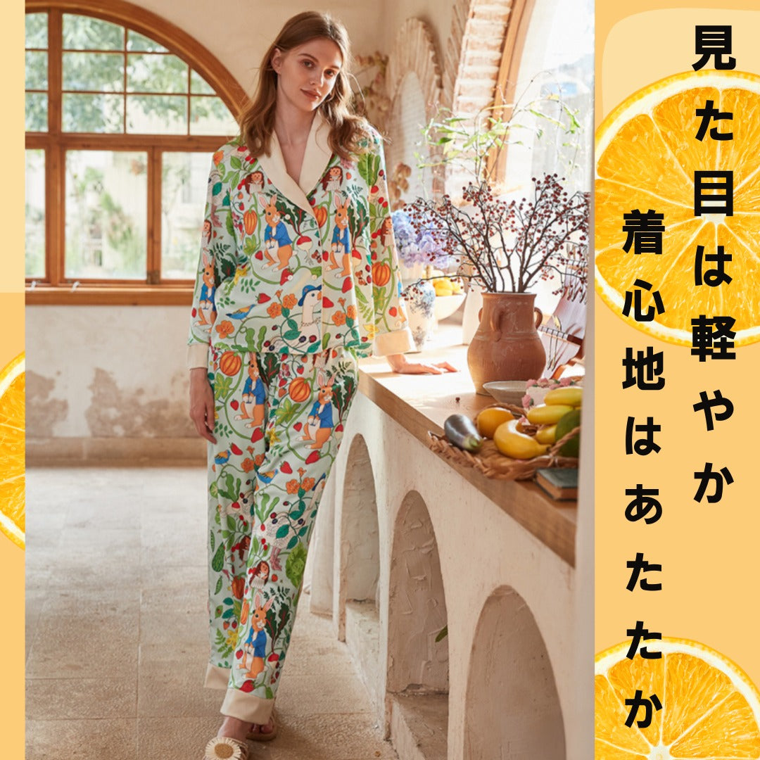 【先行発売開始】2025秋冬新作 🎃ホットシルク 裏地ベロア ハリネズミ&うさぎ柄 長袖 長ズボン パジャマ ルームウェア