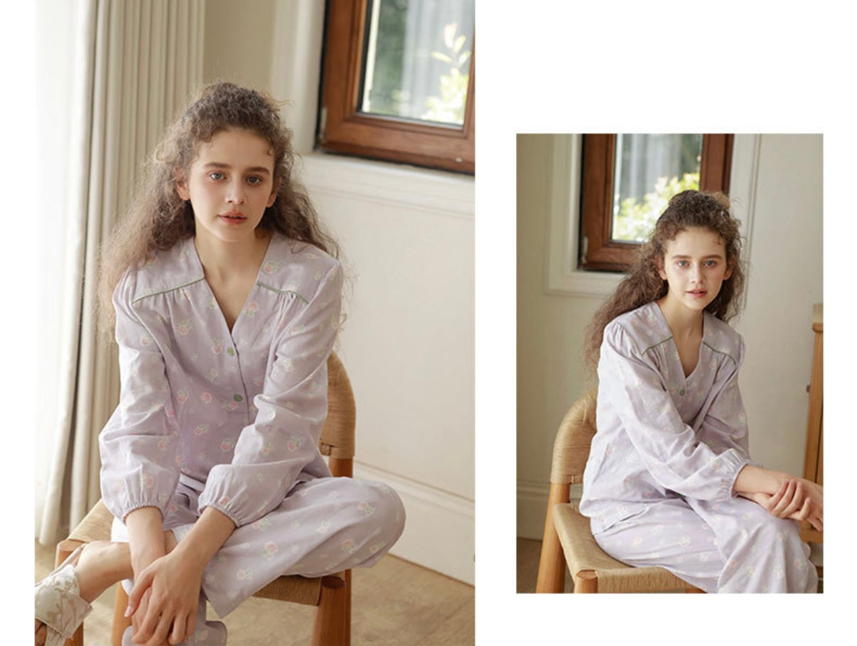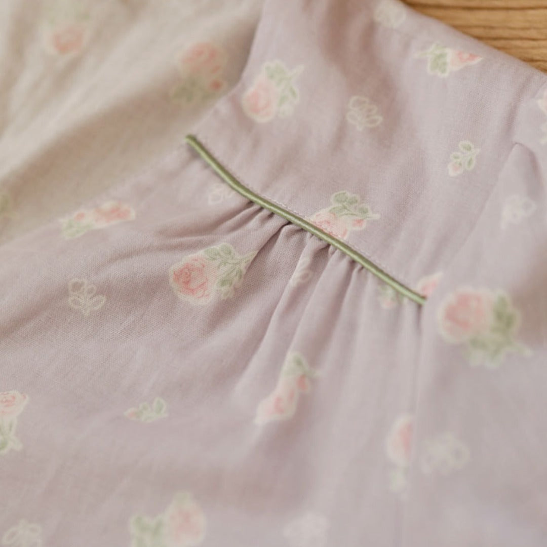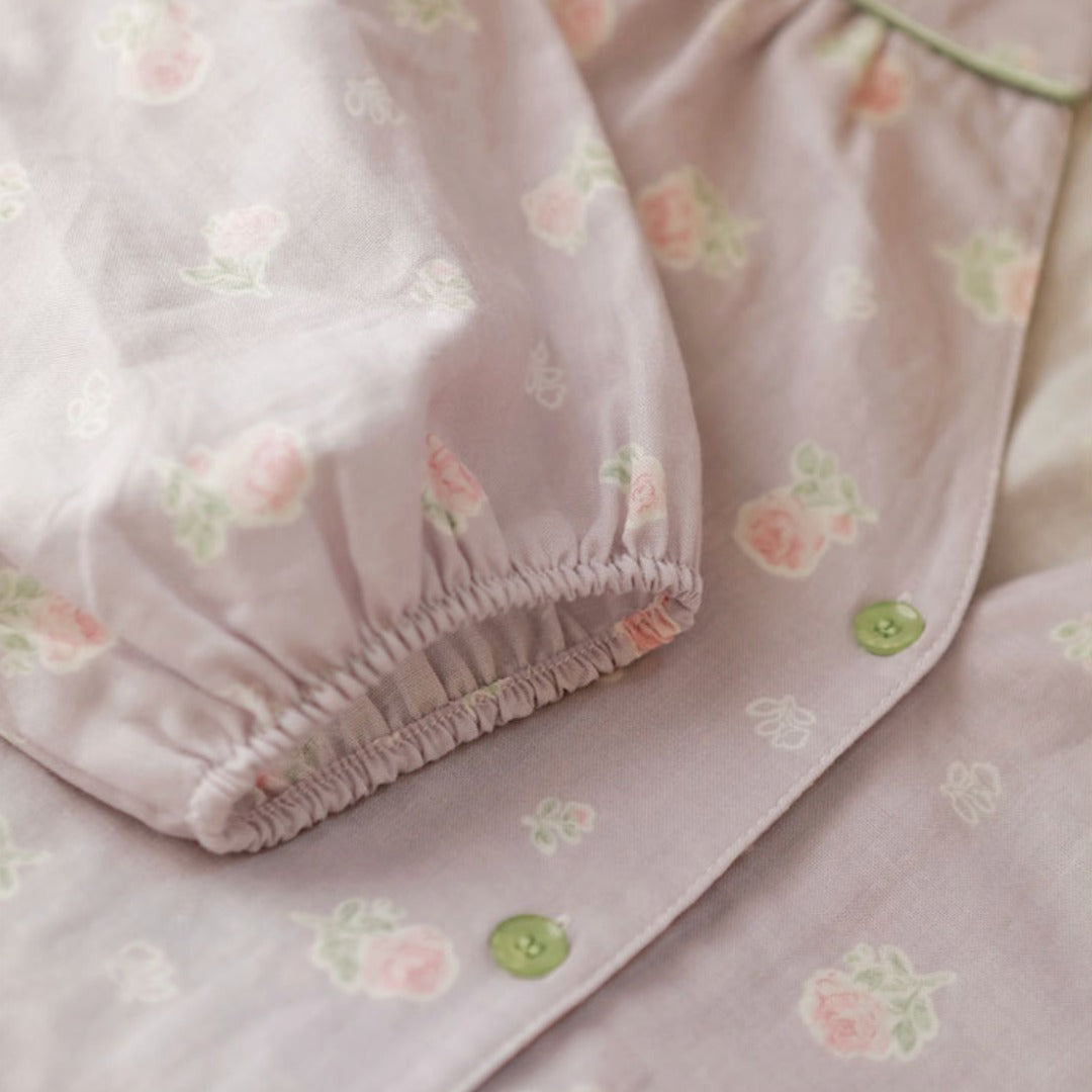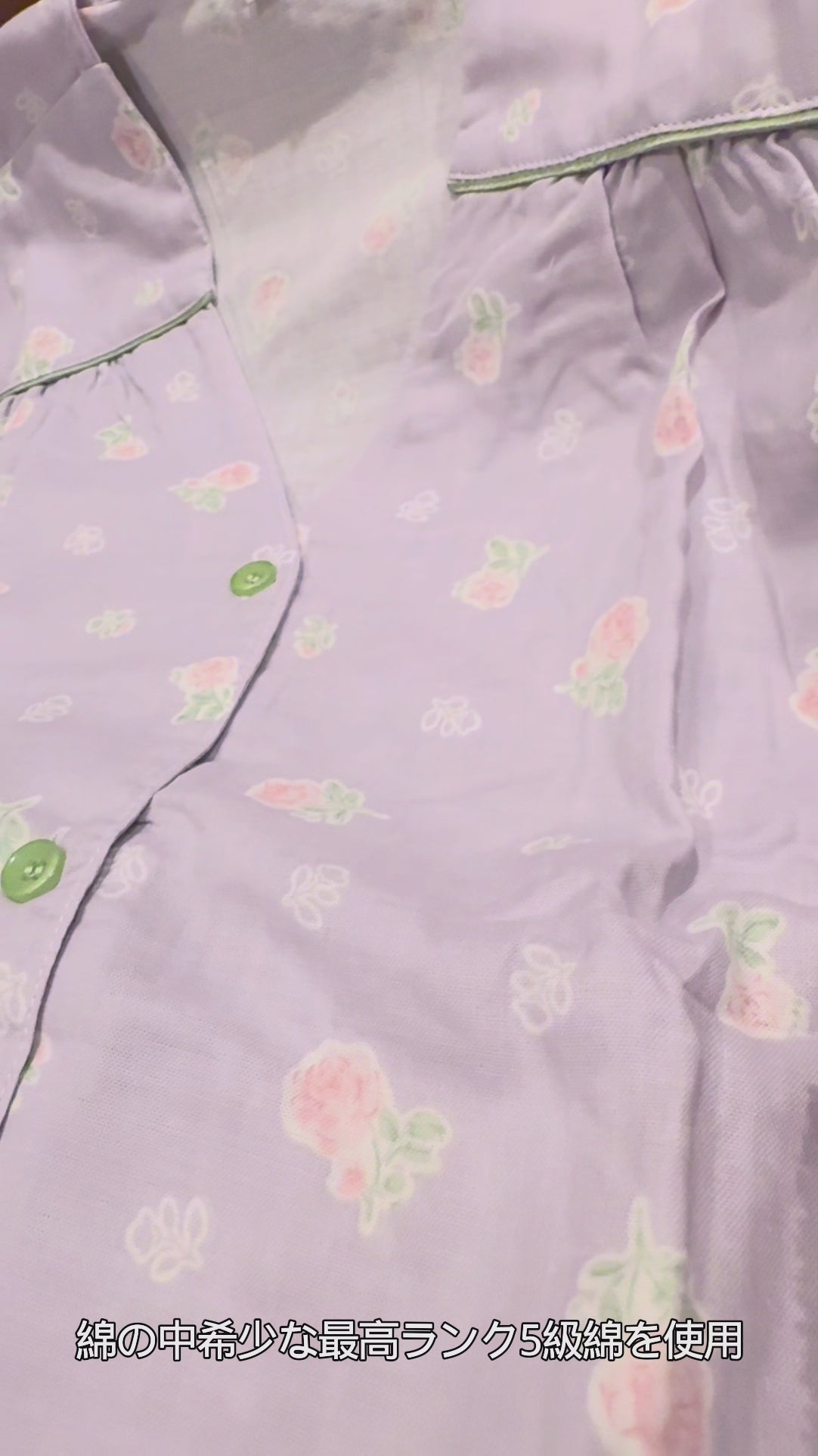 WダブルガーゼW【日本製】2025新作 フェミニンローズ 2色 長袖 長ズボン V開き 襟なし パジャマ ルームウェア
